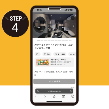 店舗のQRコードを読み取ると、「スタンプを押す」ボタンが出てくるので、このボタンを押し、QRコードを読み取ります。