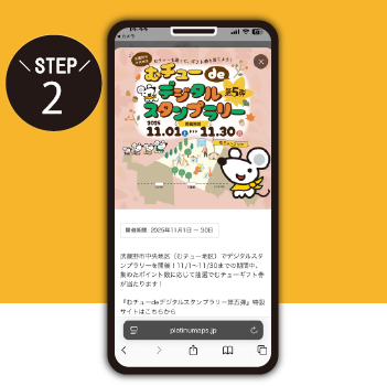 - スタンプラリーに参加後、スマートフォンの機種変更された場合、利用ブラウザの変更をした場合、登録情報を忘れた場合、最初からのスタートとなる場合がありますので、ご了承ください。